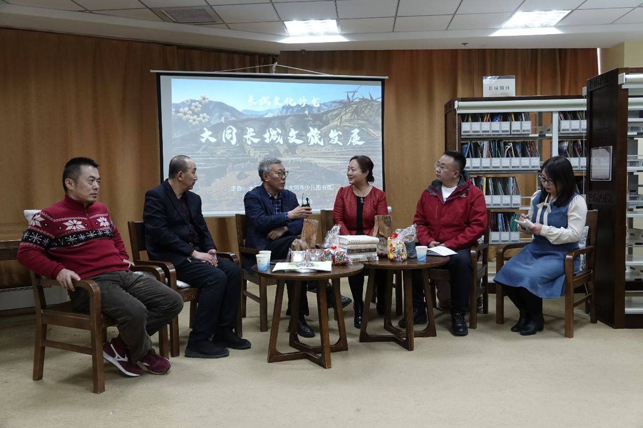 大同市图书馆长城文献中心还有一个品牌项目,就是与大同市长城文化旅游协会共同举办长城文化沙龙。这个长城文化沙龙每月一期,现在已经办了二十期。截止到目前已经举办了长城文化沙龙有《我眼中的长城》《大同长城重点段与长城国家文化公园建设》《大同市长城保护条例》 《书本里的长城》《长城保护从孩子教育开始》《镜头里的长城》《行走中的长城》《长城游,游什么?》《“沧桑长城 形胜大同”大同长城摄影展》《第三届中国长城论坛大同获奖论文交流》《冰雪映衬下的长城》《大同长城知识知多少?》《董耀会及长城著作漫谈》《大同长城展馆开馆》《长城志愿者在行动》《大同长城保护大家谈》《实践探索 长城研学》《长城文旅协会标志大家谈》等。