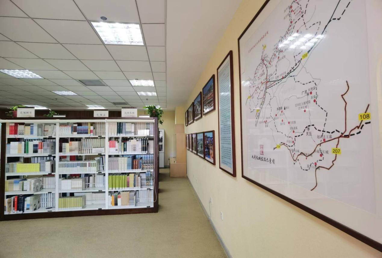 陈建文主任向我介绍说,长城文献资料研究中心主要任务:第一,收集、整理、保存长城文献资料。通过购买、接受捐赠、交流互换、网络及自媒体、分析综合、二次加工等途径,全面收集有关长城的图书、期刊、报纸、图片、电影、电视剧、学术论文、邮品及音频、视频、电子资源等文献信息资料,依托大数据进行加工整理,并开发二次、三次文献、云数据等,进行数字化,建立数据库,长期保存。第二,研究长城。就长城精神、长城文化、历史价值、军事作用、建筑艺术、工程技术、美学价值、民族交往、长城保护等有关领域进行深入探索、开发、研究,提出调研和研究项目、课题,形成调研考察、项目报告、宣传保护建议书、普及性、专业书籍等学术成果。第三,宣传长城。与报纸、期刊、电视台、新闻网等媒体深入合作,并通过网站、公众号、自媒体、主办的刊物等渠道,进行全面系统、精细化宣传。组织并联合有关部门和团体,开展有关长城的微电影、宣传片的摄制;书刊和画册的出版;文创产品的开发制作;通过征文、书画展览、笔会、体育活动、音乐文艺表演等活动,以及组织相关人士考察长城等多种方式来宣传长城。第四,学术交流。利用讲座、展览、报告会、演讲会、座谈会、新书发布会、研讨会等形式,邀请国内外和本地专家学者进行学术交流,宣传保护长城。第五,开发利用长城。与文物、文旅部门和长城学会、长城文化旅游协会、长城保护研究机构密切合作,利用馆藏长城文献信息资源,以及项目、课题研究成果。