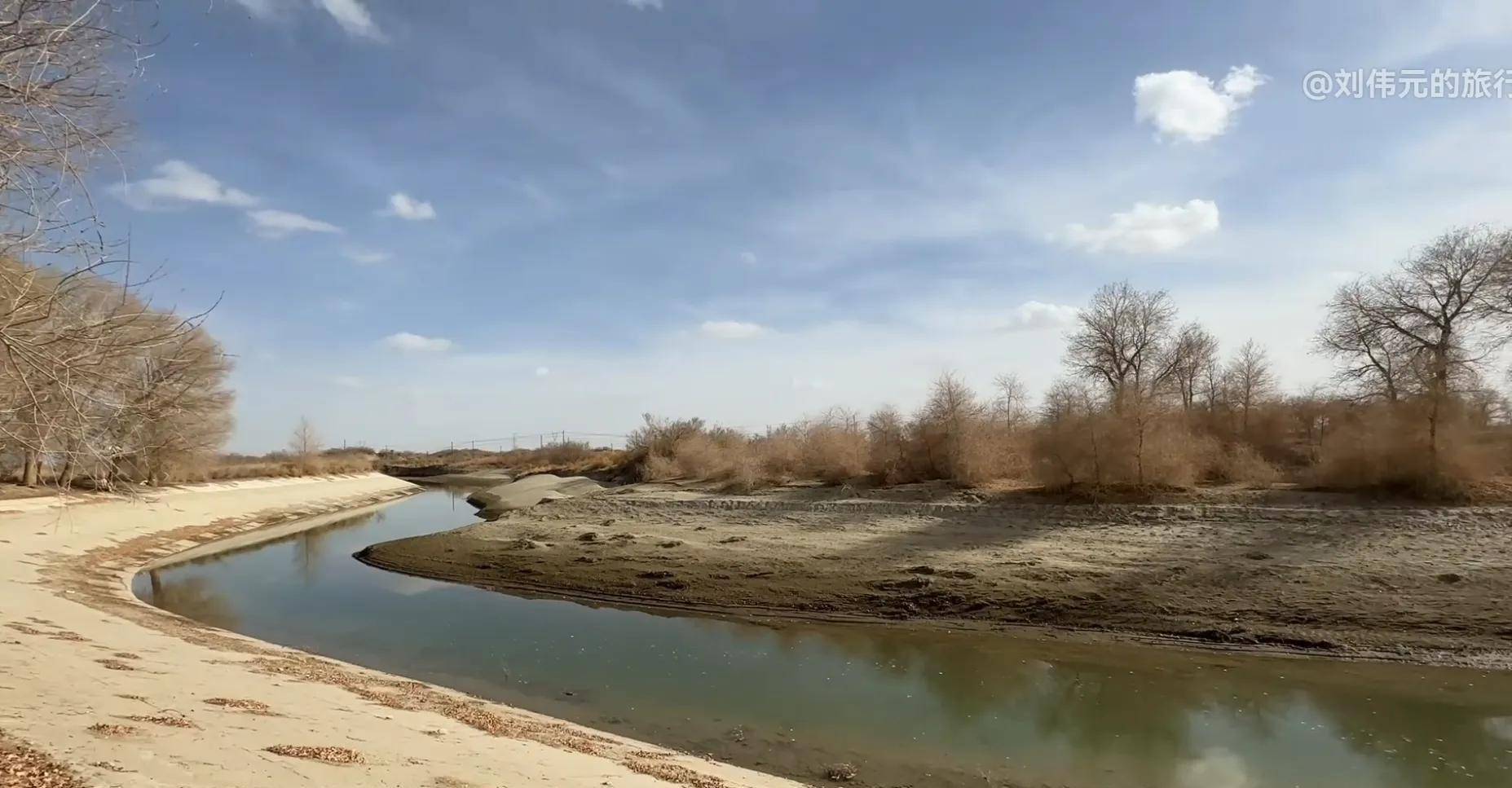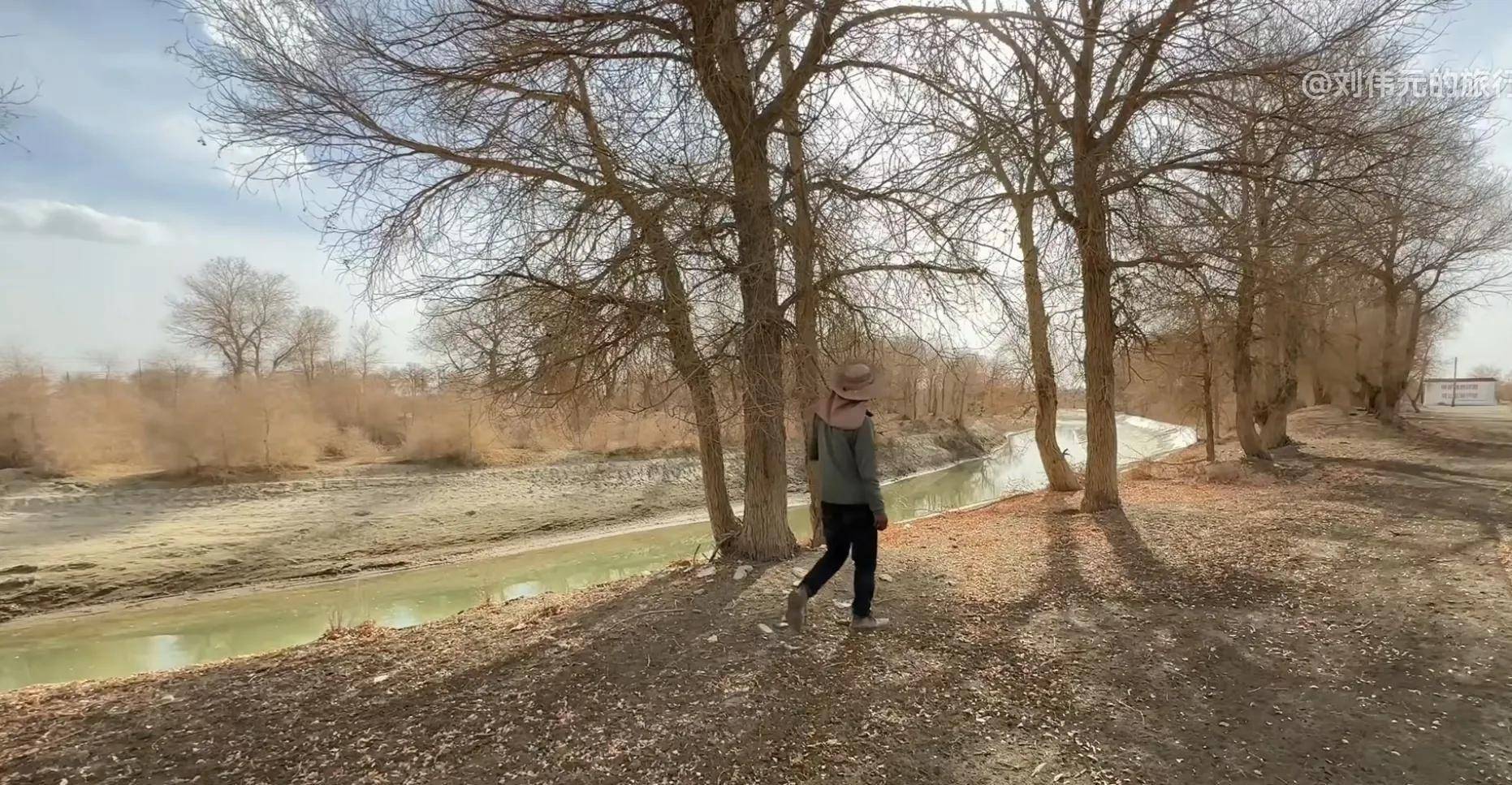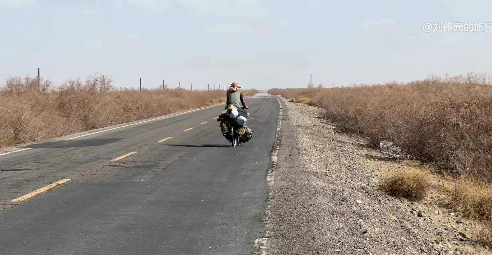 “羌笛何须怨杨柳,春风不度玉门关”,是有道理的呀!内地早已花团锦簇、桃红柳绿的,新疆这边还是枯黄一片,不过气温也在持续上升,伟元骑行中也会满头大汗!