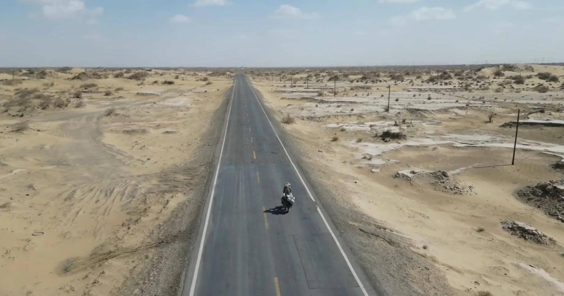 凌晨的小雨消除了沙尘,刘伟元的旅途再现了久违的蓝天白云。早上起来,伟元的心情大好,考虑到补给的问题,伟元决定今天多骑点路,以便能早点到达若羌县。