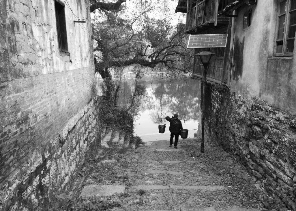 去古镇拍摄采风,大家追求的是古镇的土味和民居的纯味,但随着时代的发展,古镇中历史和现代的物品不免会杂在一起,显得很不协调,且又无法彻底分开。比较简单的处理办法,就是用黑白片的方式去进行拍摄,这就会很自然地避开这些烦恼,让画面变得影调统一、简洁,也缓和了矛盾,让画面看起来也舒服多了,整体感觉比彩色片子更有古朴和乡土的味道,不信,你试试看!