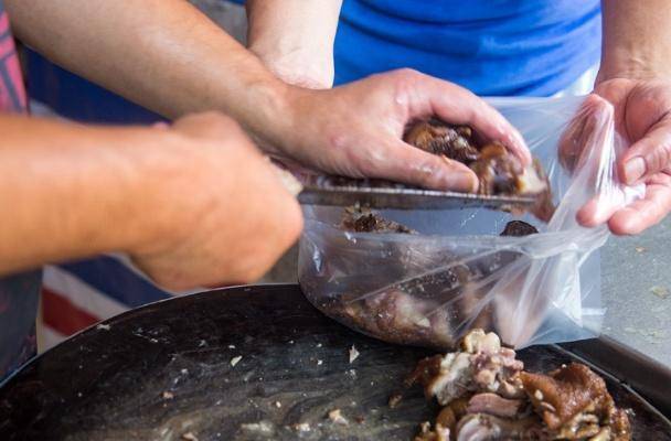 因为这间店比较小,经常来这里吃的话,也有顾客是喜欢打包带走的,拿回家吃的话也是非常过瘾的,打包带走的时候老板也会帮忙把骨头给剔掉的,只需要把肉打包带走就可以了。这对老夫妻在楼梯间卖的这种酥肉小吃,因为地方有限,所以说他们一天只做四大盆,卖完的话就没有了,每天也能够赚500块钱,一天下来也就能够赚个2000块钱了,因为他们每天只限量做四大盆,经常来吃的顾客他们都是知道的,如果想要吃的话就趁早要来了,要不然的话卖完了就只好等明天了。