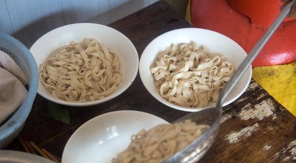 不仅他们这里的肉非常的好吃,肉汤也是特别的浓郁,这个老板在卖苏州的时候也会煮一些面条,这些面条也只要一块钱一碗,加肉的话是要另外算的,把酥肉和卤汤都放进去的话,搅拌均匀就可以吃了。