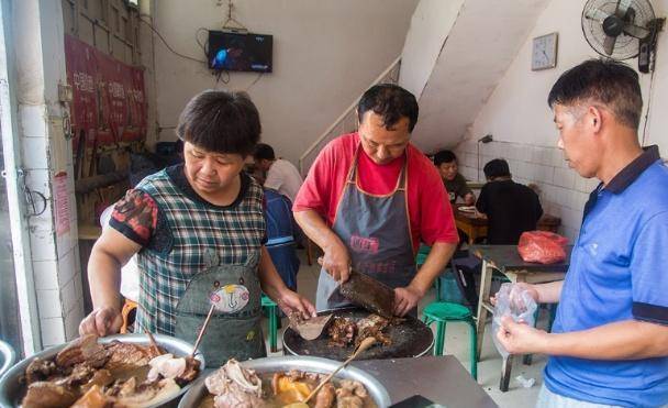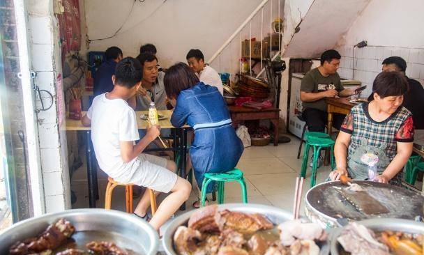 这对夫妻看起来其实也是有50多岁的样子了,其实除了这个店面,他们已经有开了30多年的时间了,从来都没有装修过,我们从图片上也可以看得出来,真的是太破旧了店面,其实也就是一个六平方米大的小馆子,还是一个楼梯间组成的小房间,看起来也是特别的拥挤,甚至还被周围的常客们称为楼梯间小吃,生意真的是非常的火爆,在图片上的这一大坨肉其实就是他们主要的经营食材了,也有很多的网友,他们在看到第一反应就会问,这不就是卤肉吗?这是他们经营的并不是卤肉,而是苏州老板,就说这个东西很多的人叫酥肉,不是炸的,而是吃到嘴里的话会非常的酥,它和传统的卤肉其实也是有很大的差别的,搂着我们也知道最重要的就是汤汁了,但是老板卖的这个酥肉除了他以外,还会让你吃到嘴里边有一种非常自然的感觉,可以说比梅菜扣肉里面的肉还有酥,所以说才会这样得名了。