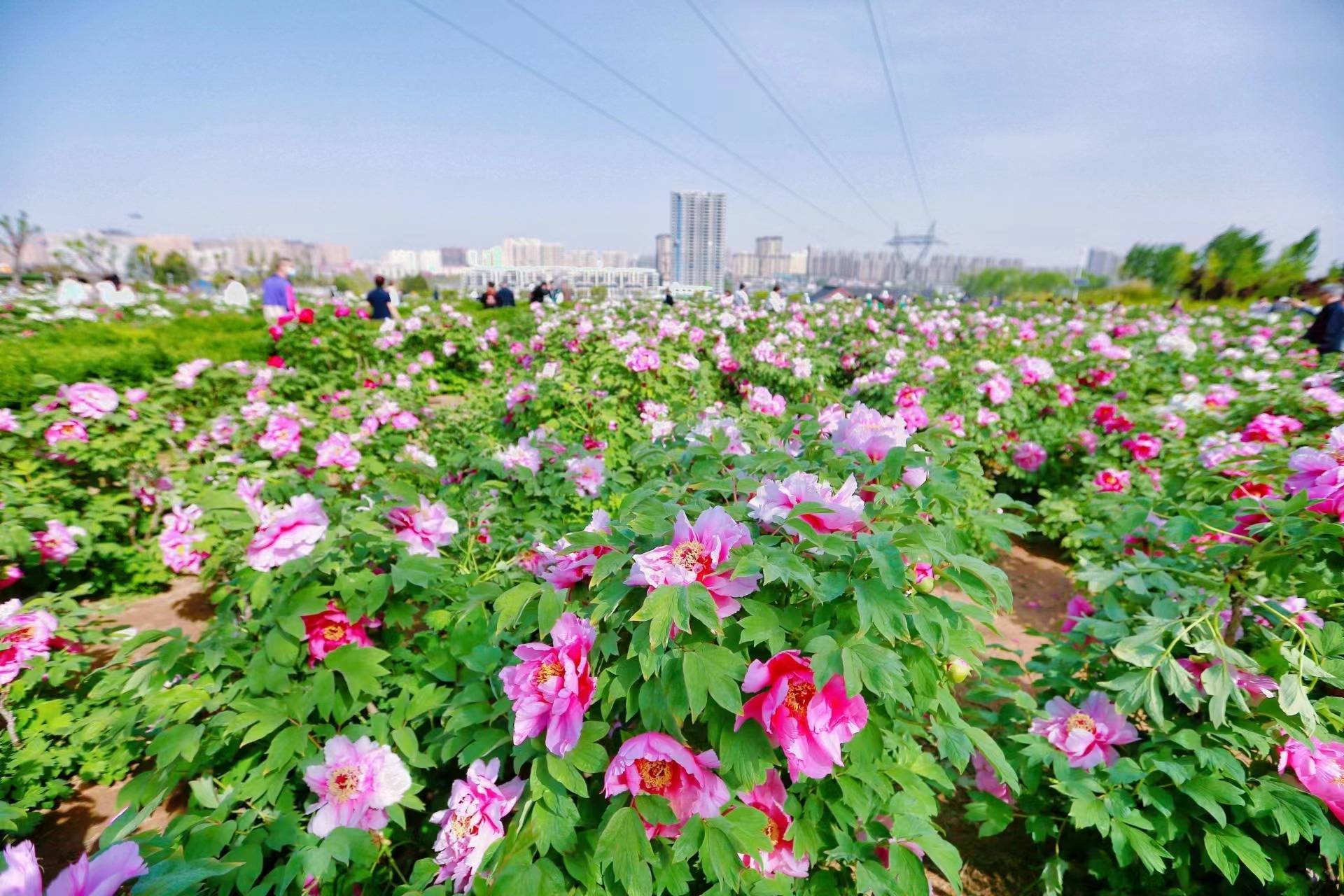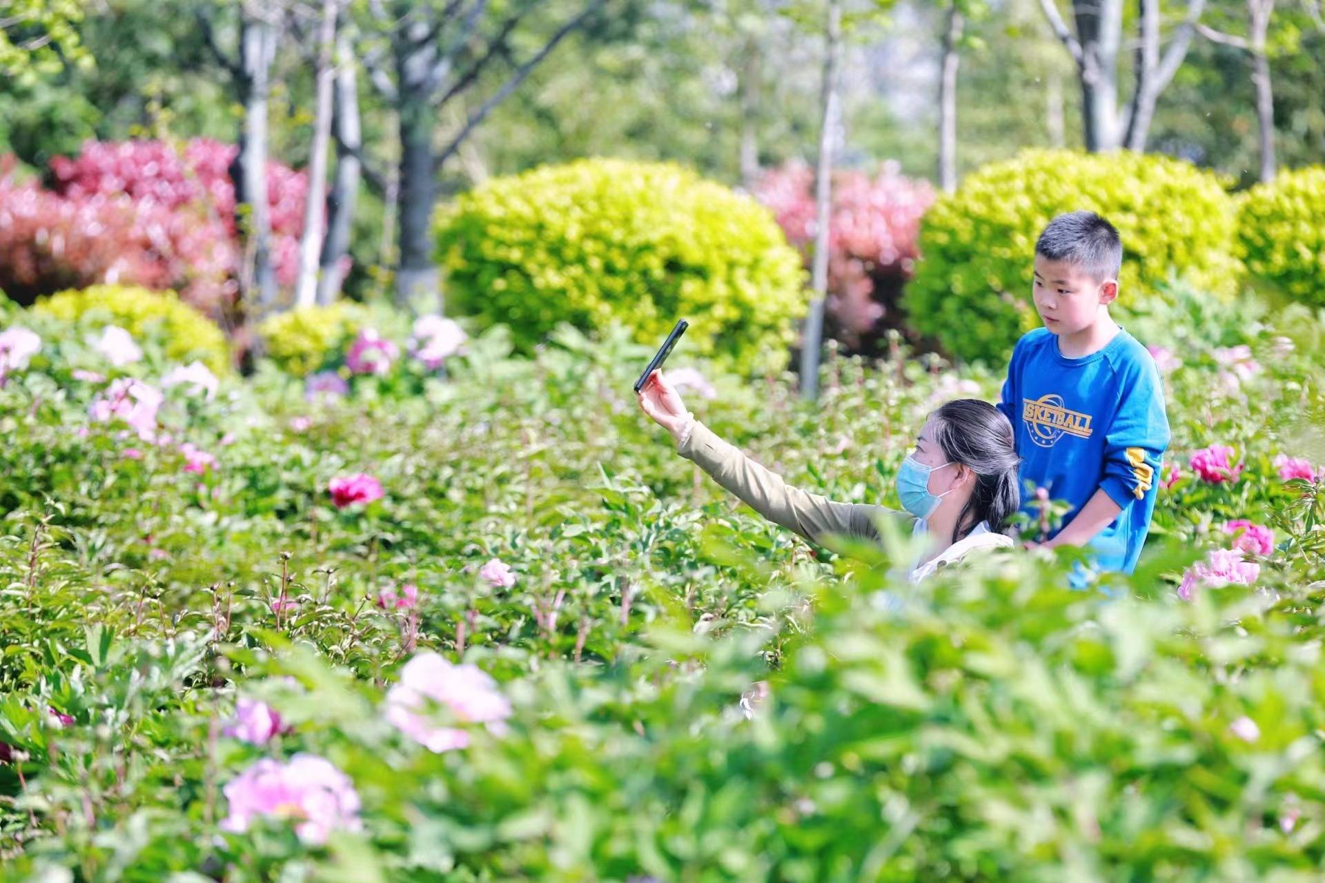“牡丹园内拜群芳,赏花何须去洛阳”。铜川牡丹园占地面积180亩,是陕西省最大的牡丹园,有各类牡丹百余种、10万余株的规模。花开时节,满园争奇斗艳,牡丹、芍药在春风的摇曳中争相开放。叠水景观和牡丹养生苑两边还配植了国槐、法桐等各类花卉植物六十余种,到处都是花团锦簇,一派生机勃勃的景象。