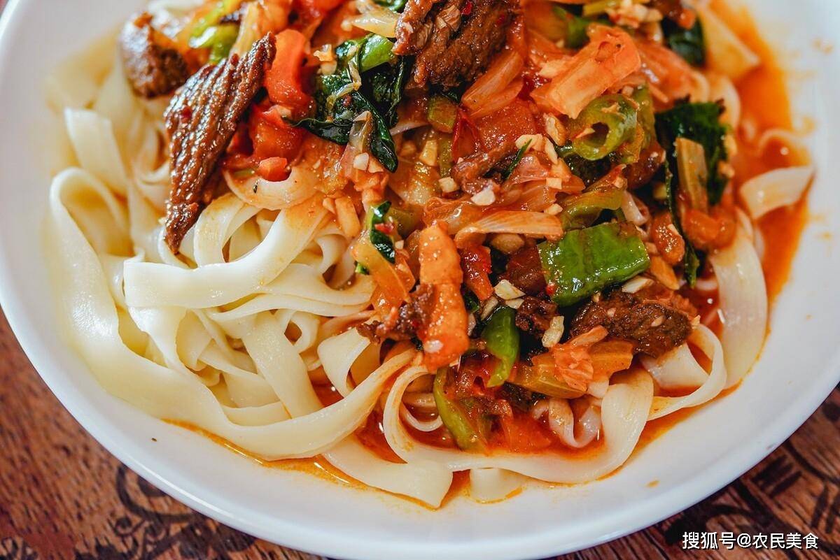 新疆拌面也叫拉条子,一次就是一大盘,搭配各种肉、菜,看着就食欲满满。一次绝对能让你吃得非常饱。