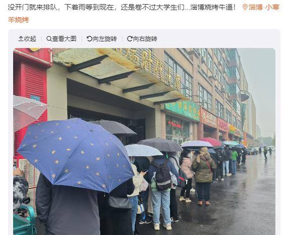 最先行动的便是来自山东省的大学生们,他们轻装上阵,二十多的路费花销、一两个小时的往返路程,便能品尝到人均消费才六十多的淄博烧烤。于是在一波又一波的人流中,淄博烧烤的处处门店被挤爆,光是排队就要花上四五个小时的工夫,但这依然阻挡不了食客们的热情,使得一些店家甚至不得不“赶客”。