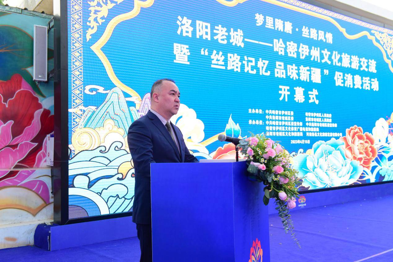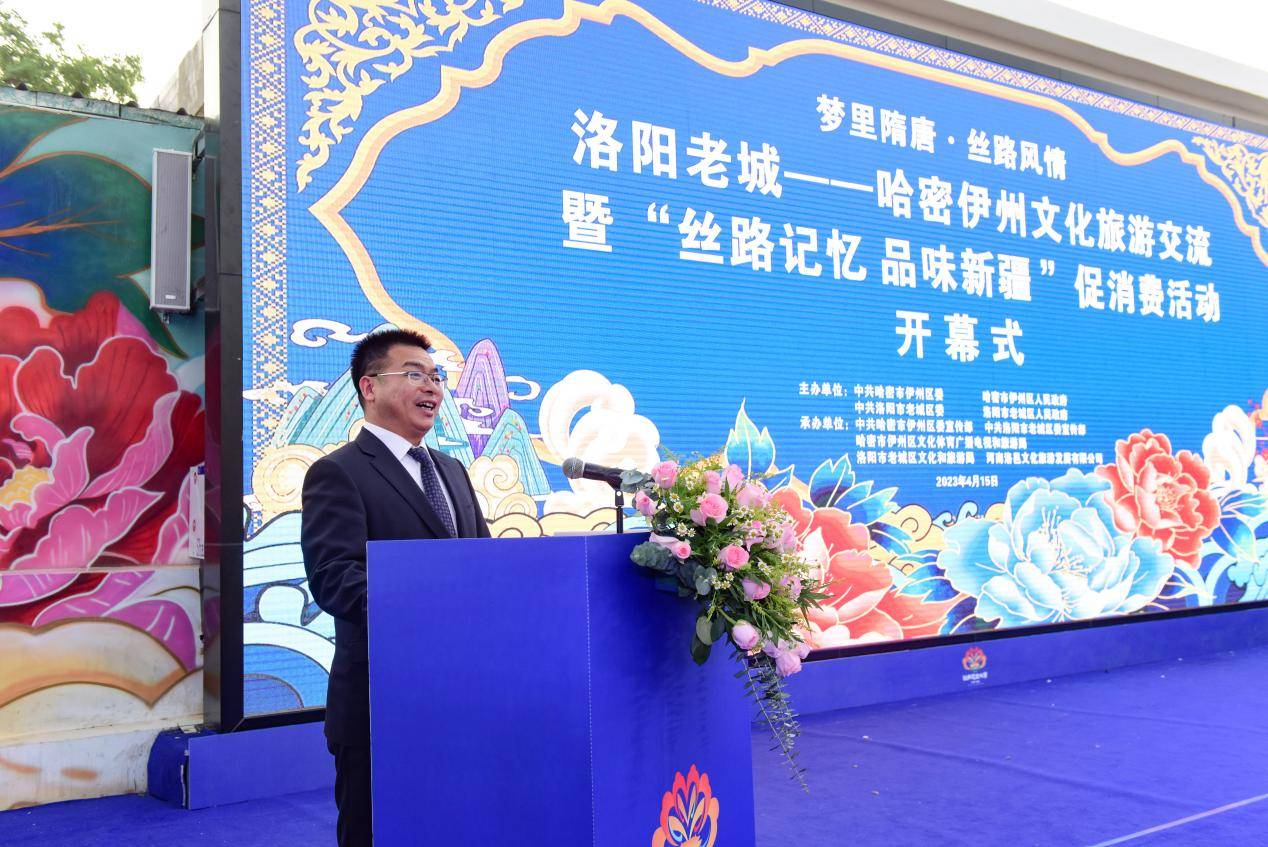 河南智库舆情网讯(郭跃峥 韩露 石智卫)“海内存知己,天涯若比邻 ”。4月的洛阳牡丹热烈绽放、倾城倾国。4月15日下午,在绿意盎然、花香四溢的大唐花市,现场人头攒动、气氛热烈,“梦里隋唐·丝路风情”洛阳老城—哈密伊州文化旅游交流暨“丝路记忆 品味新疆”促销费活动开幕。