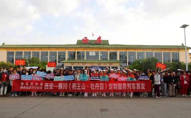 4月15日,500余名游客乘坐Y621次定制服务列车从西安前往铜川,将畅游铜川药王山、牡丹园。这是中国铁路西安局集团有限公司首次开行西安至铜川方向的定制旅游专列,助推旅游市场升温。