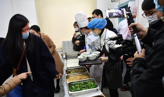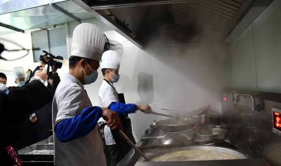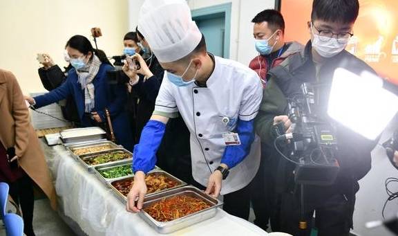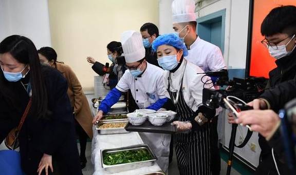12月7日,四川成都。蒙古国赠送的1800斤羊肉送到华西医院后,大厨们精心准备,制作了“滋补羊肉汤、红焖羊肉、粉蒸羊柳、羊肉干锅”四个“四川风味”的大菜,为包括赴武汉抗疫的医疗队成员在内的全院医务人员免费加餐。