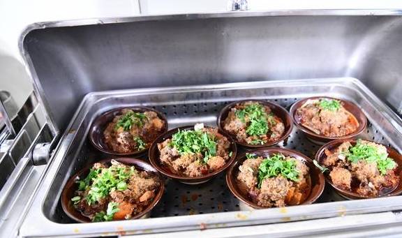 图为干锅羊肉。从12月6日一早开始,医院膳食中心的大厨们就开始做好准备,这1600多斤羊肉将制作成四道菜——粉蒸羊肉,滋补羊肉汤,干锅羊排,红焖羊肉,在12月7日中午在院内各个餐食供应中心为全院员工加餐。