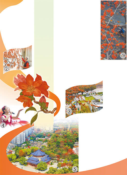 图①:广州市民在木棉花下骑行。 黄 剑摄(人民视觉) 图②:画家陈永锵在创作木棉花主题的画作。 陈美霞摄(人民视觉) 图③:广州市阅江路沿线,木棉花在枝头盛开,有轨电车缓缓驶过。 陈志强摄(影像中国) 图④:青少年红棉诗会在广州市越秀公园举行。图为一位小朋友咏诗赞美木棉花。 梁 喻摄(人民视觉) 图⑤:俯瞰广州中山纪念堂木棉花盛开。 廖 宁摄(人民视觉)