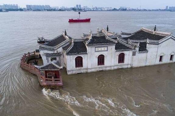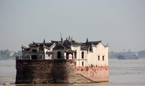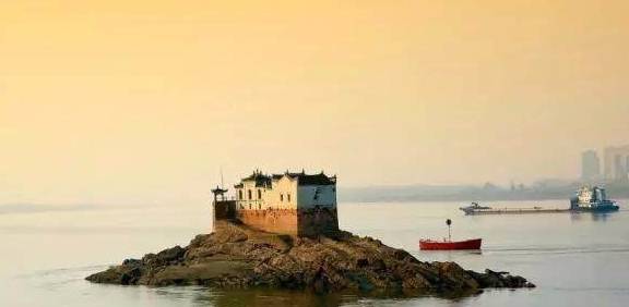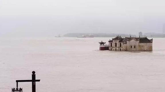 千百年来,每到汛潮,水漫楼阁,只剩高层窗口,甚至只剩那檐牙、龙吻在浩淼长江水之中。狂涛巨澜曾使多少名楼华构席卷而去,然而,汛期一过,水落石出,它又横空出世,威镇江心。
