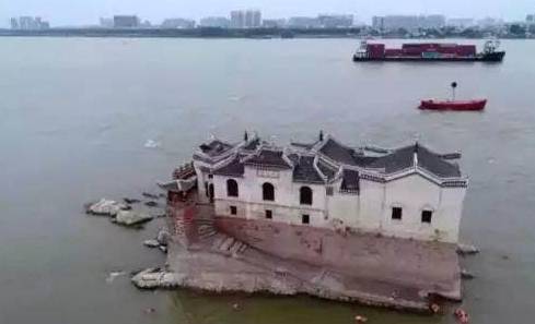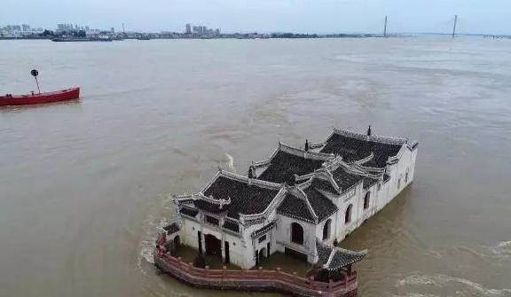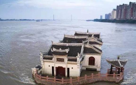 近日,鄂州一名古修建喜好者到长江边对观音阁航拍,从航拍来看,虽然洪水曾经吞没了观音阁的下方十几米高的基座,但是古修建在洪水中平安无事。以前,位于长江江心的观音阁曾多次被洪水淹没。因一次次被淹没,最后又能完整的露出水面,这座楼阁被誉为“阁坚强”。