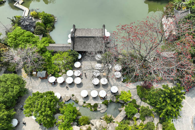 黎明湖公园里的大众茶馆供市民饮茶、休憩,尽享春日美好时光(央广网发 谢贵明 摄)