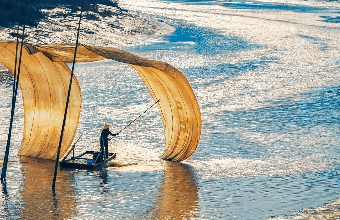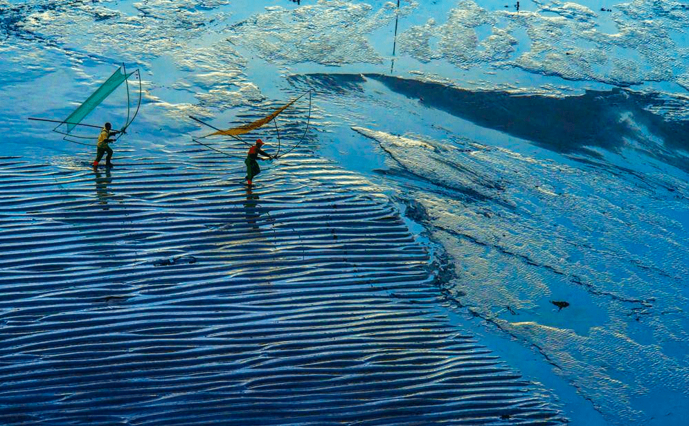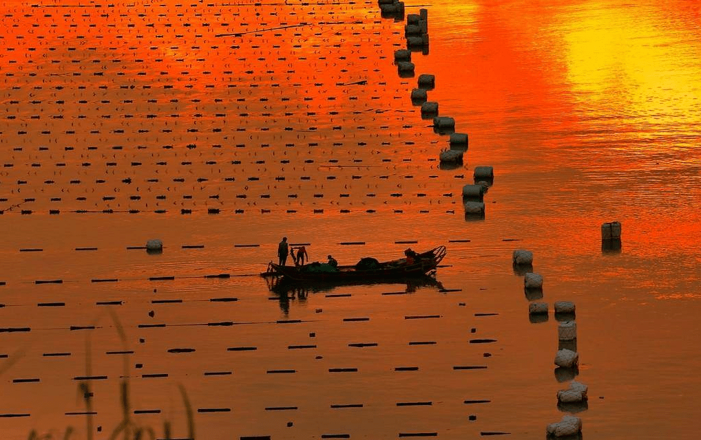 值得注意的是:滩涂是要在退潮时候才能拍摄,而要满足日出时刚好退潮,一般是在每个月的初一和十五的后面几天,也就是农历的初二到初五或初十六到初十九这几天,其余时间,日出的时候水位高,只能拍船影和杆影,也没有渔民在滩涂劳作的场景。