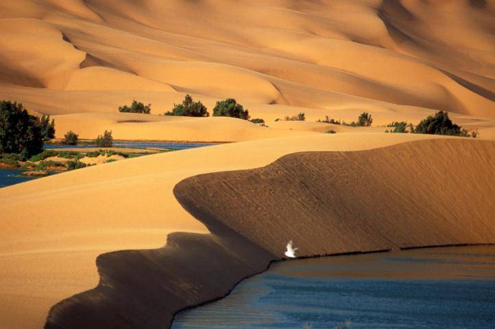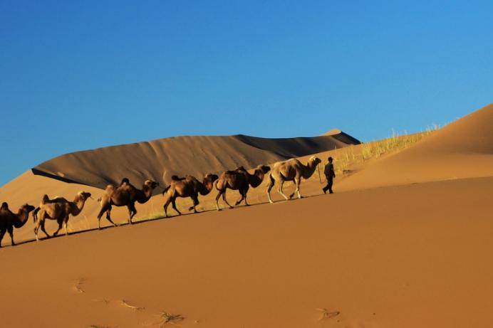 这片沙漠也有鸣沙山,而且规模更大,甚至还有沙漠中的湖泊、沙漠中的湿地,在大片的黄沙之中可以见到静谧美丽的生命之源,那样的场景非常的震撼。沙漠一部分经济被探明,但是在西北位置还有很大一片区域无人踏足过,也是隐匿在内蒙古的一片无人区。巴丹吉林沙漠最美的就是必鲁图峰了,位于沙漠的中部,可以一览沙漠四周的景色。
