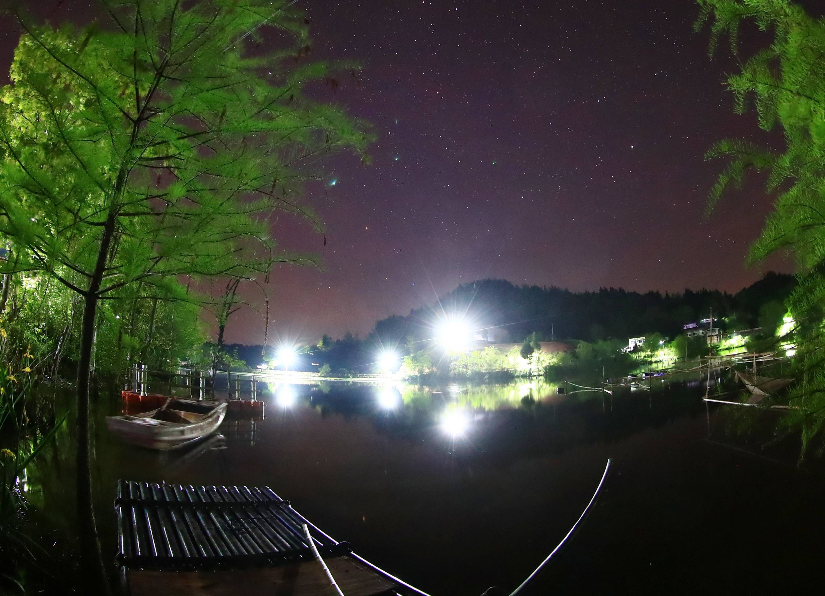 夜幕渐渐降临,池海的空气格外清洁透,山水、晚霞、渔翁夜捕、鸟群归巢欢歌,其情其景,正是人们梦中的桃花源,胜过最美的舞台话剧。