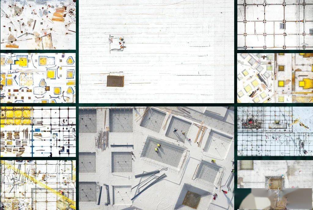 直到最近,“从上向下看一个场景”这种角度才被实现。这一系列的普通建筑工地打破了通常的单调,产生了艺术抽象的视觉效果,在颜色、对称性和构图上引人入胜并协调一致。