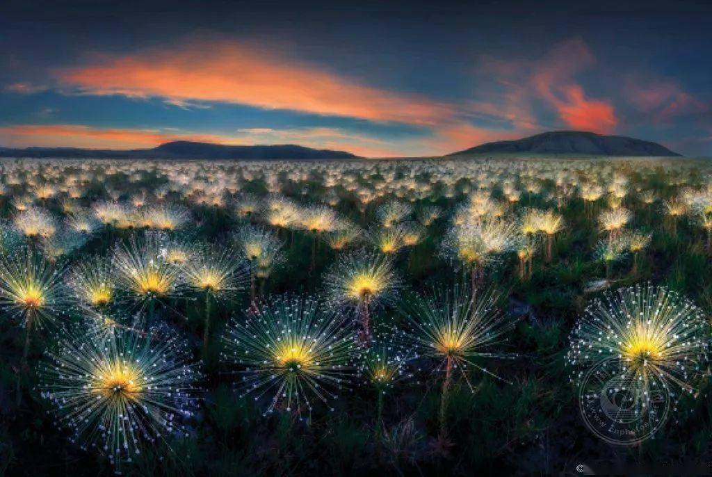 黎明时分在维亚德罗斯高原盛开的芍药属野花的花田。这是一种罕见的植物,只生长在巴西中部高原的少数高海拔塞拉多地区。这种野花会反射光线,在日出和日落的背光下拍摄时,其外观具有自带的光线。塞拉多是世界上生物多样性最强的热带草原,不幸的是,它正被农业工业的扩张和不受控制的森林砍伐所破坏。巴西的大多数河流都发源于塞拉多,包括亚马逊的许多河流。塞拉多的森林砍伐正在造成环境灾难。除了大规模灭绝,干涸的水源将在不久的将来面临水危机,这已经在发生了。塞拉多只有少数避难所在一些保护区得到了充分保护。这张照片拍摄的地方正在被作为拍品出售,预示着这个地方不久也将不复存在。这种植物通常被称为Sempe Viva(永远活着),被认为是保护这一不可思议的生物群落的象征。