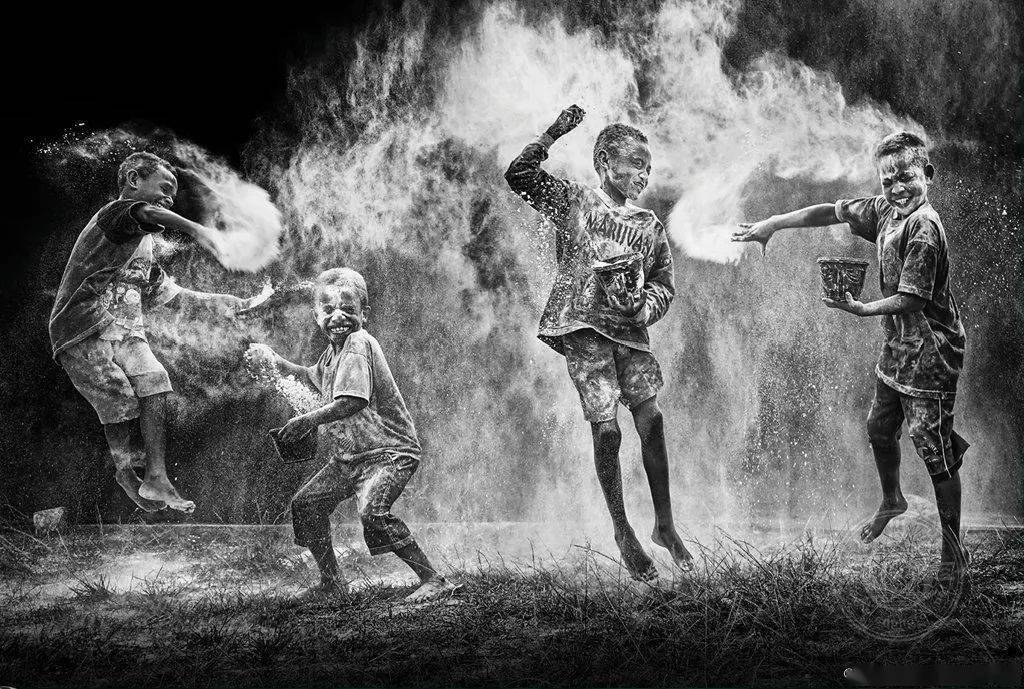 这张照片拍摄于巴布亚印度尼西亚,一群孩子在学校玩面粉战庆祝毕业。尽管他们贫穷,学校条件恶劣,但他们在一起创造了快乐的时刻。