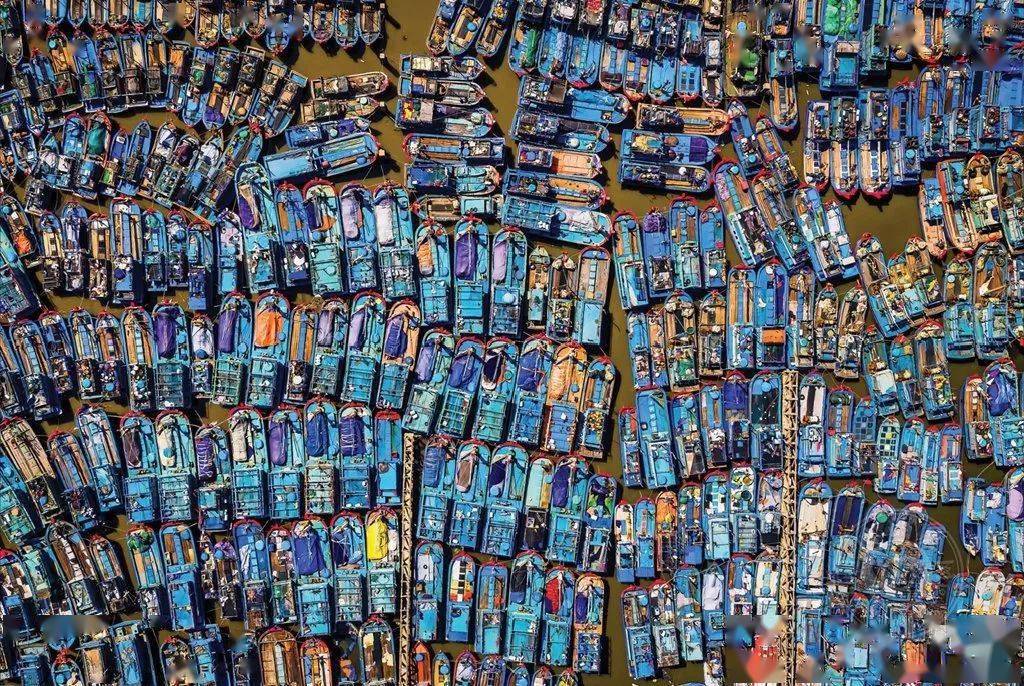 渔民的渔船在抛锚时整齐排列,以避开9号超级台风。这是30年来袭击广安的最强超级台风,已完全摧毁325座房屋,损坏14万多座房屋。