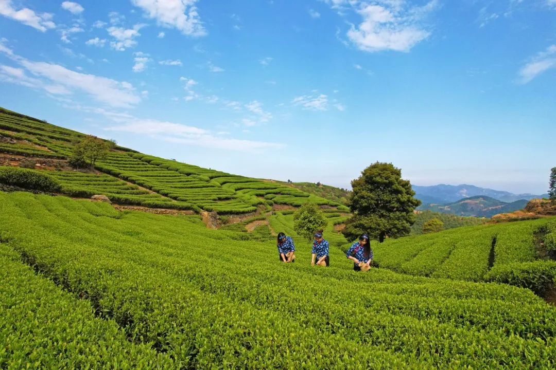 在春风轻柔的呼唤中,经过一冬休眠的茶树开始舒雅吐翠,而清明过后,嫩绿的新芽早就挤满了茶树枝头,整个茶山便迎来了最热闹的采摘时期,在游客的镜头之中,三两个采茶姑娘穿行其中,便形成了一幅幅天然、生态、美妙的画面。
