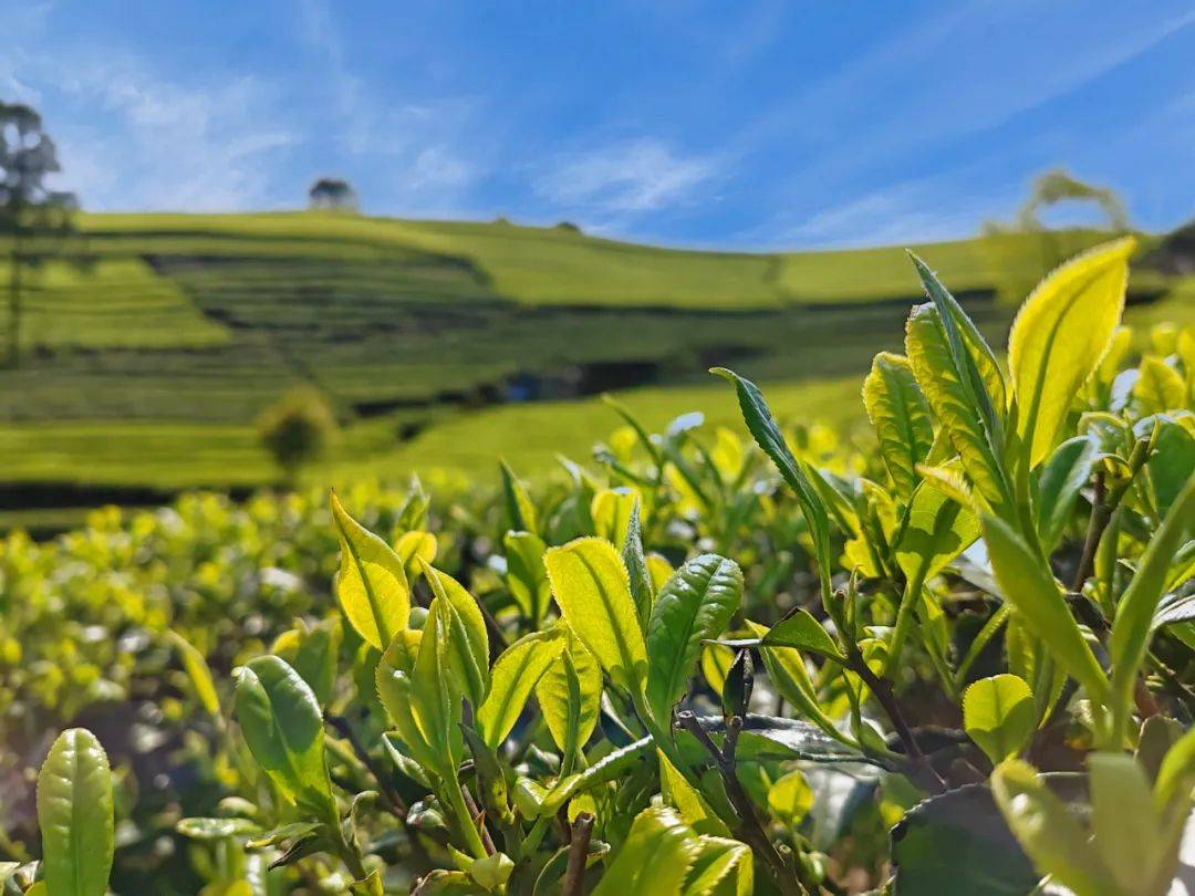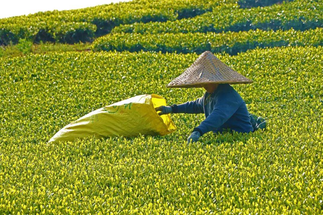 行走在茶园中,目光所到之处,那满山葱郁、在沟壑山岭间,起起伏伏,恣意铺展,在绿海泛涛的世界里,一切如诗似画。