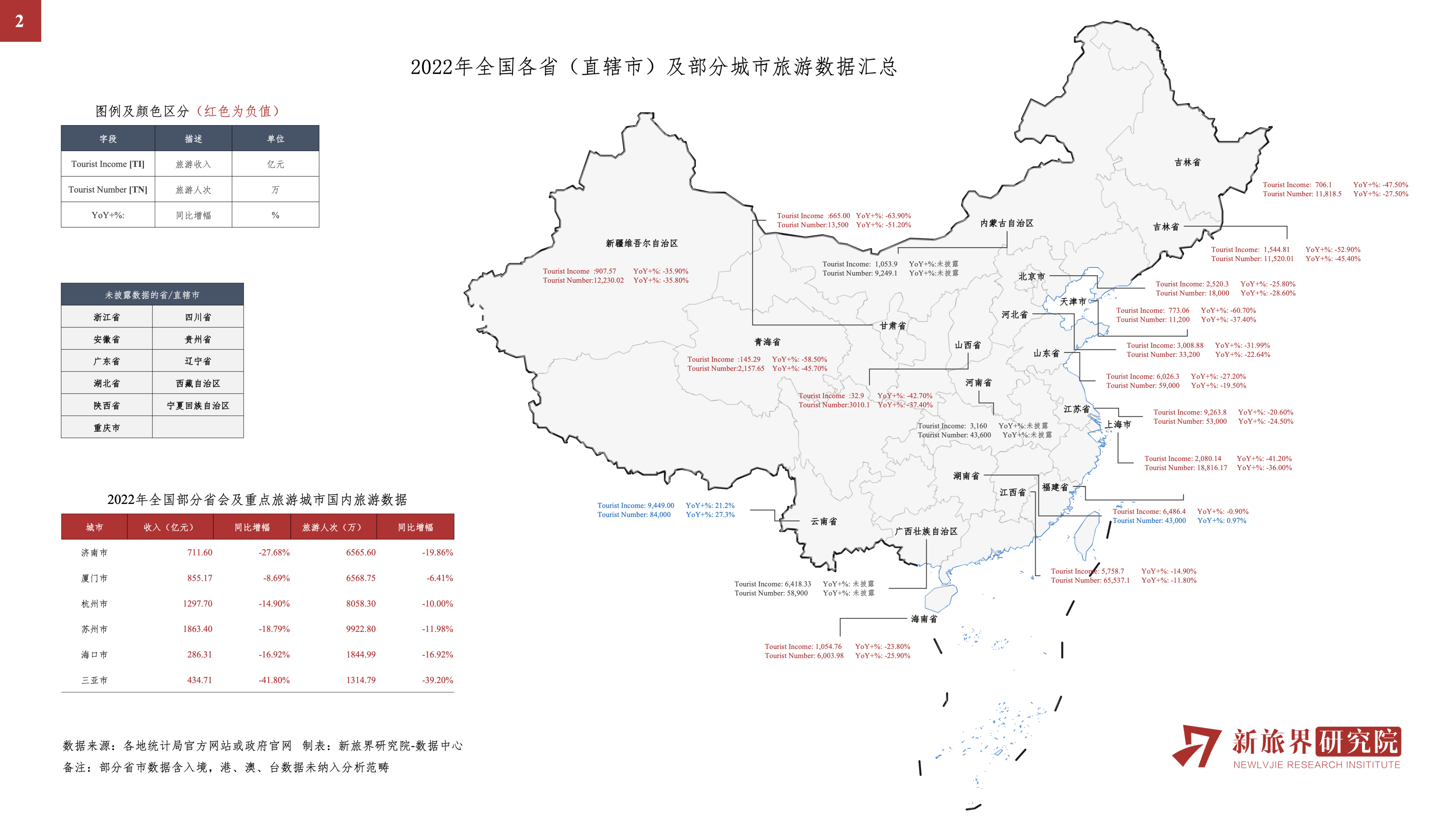 图二 2022年全国各省(直辖市)及部分城市旅游数据