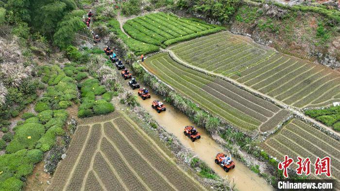 中新网安徽黄山4月17日电 ( 刘浩 樊成柱)近日,游客在安徽省黄山市休宁县蓝田镇枧潭风景区体验全地形越野车项目,沉浸式体验穿山越岭的动感。