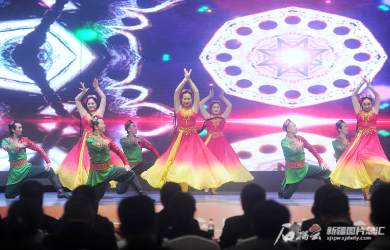 4月16日,演员在2023“优游新疆”高质量创新发展峰会暨旅游产品发布会上表演舞蹈《吐鲁番的葡萄会唱歌》。石榴云/新疆日报记者 秦梅花 摄
