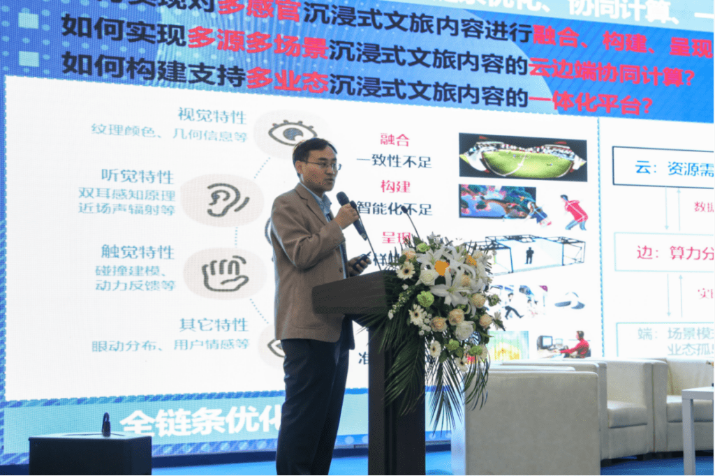 圆桌论坛正式开始前,北京大学马思伟教授对“沉浸式文旅体验技术集成与场景创新”项目进行了详细介绍,就项目研究内容、研究目标、项目团队以及目前取得的进展进行了汇报。