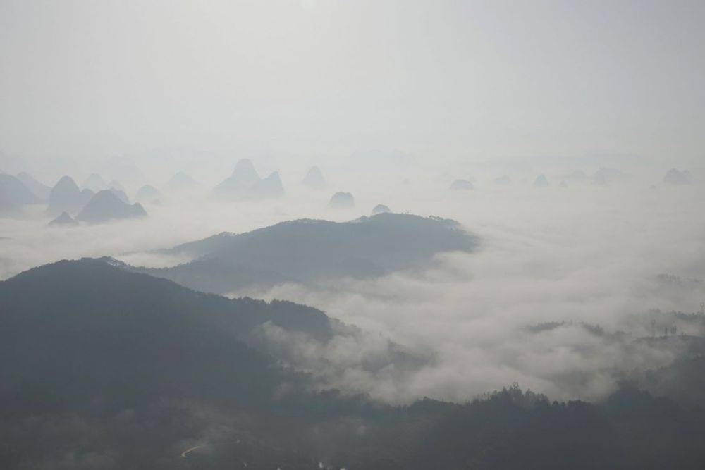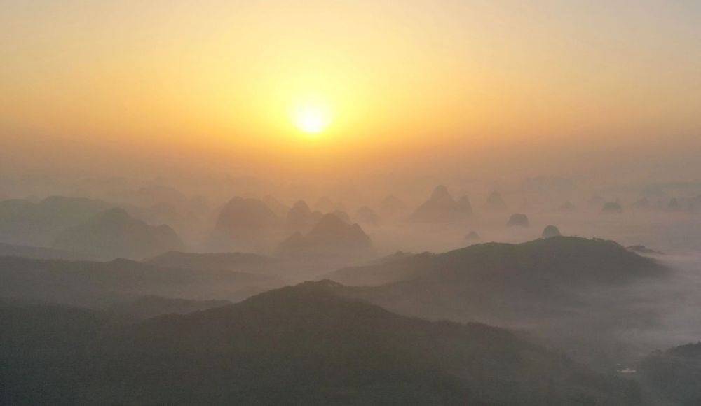 4月16日清晨,昭平县黄姚古镇喀斯特山峰日出。通讯员 喻湘泉 摄