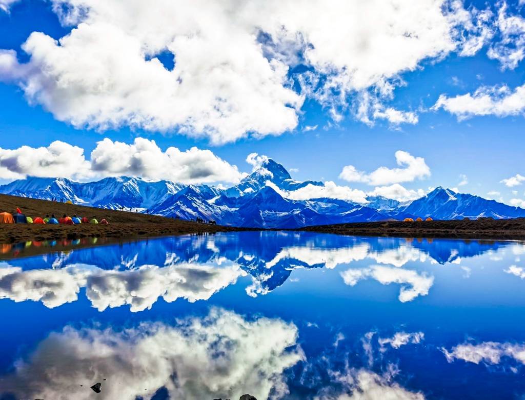 3、打卡网红地冷嘎措,观贡嘎群山倒影及日照金山。