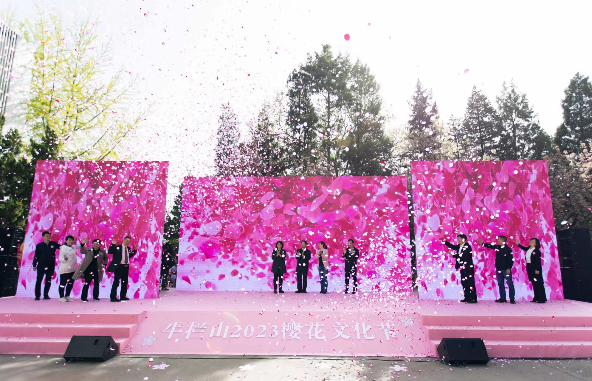 随着领导嘉宾屏幕上印上掌纹,在高潮迭起的音乐和花瓣雨中,牛栏山2023樱花文化节暨牛栏山镇2023全民阅读季、文明之约活动正式启动。