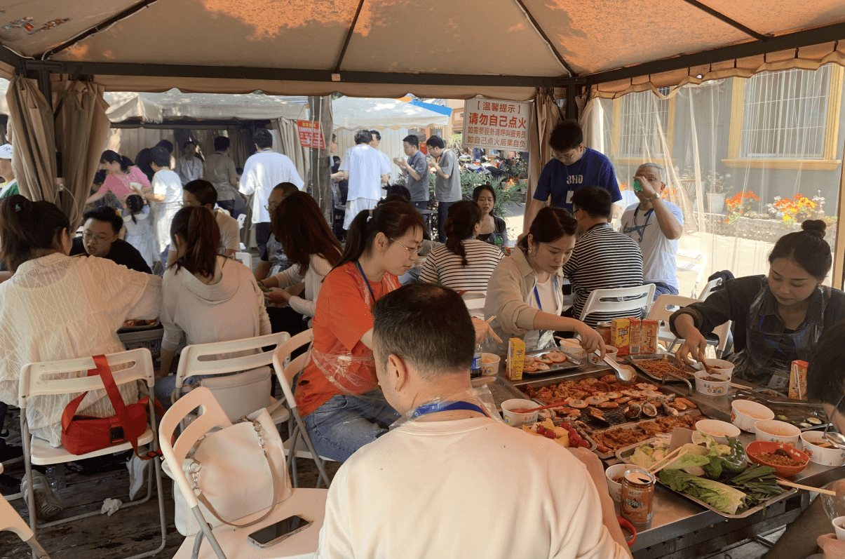 随着正午温度的不断攀升,大家选择了先吃饱喝足再备战接下来的比赛项目。大家一边吃着烤肉一边谈天说地,在一片欢声笑语中大快朵颐。