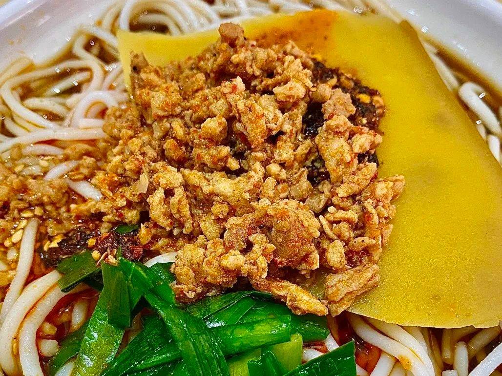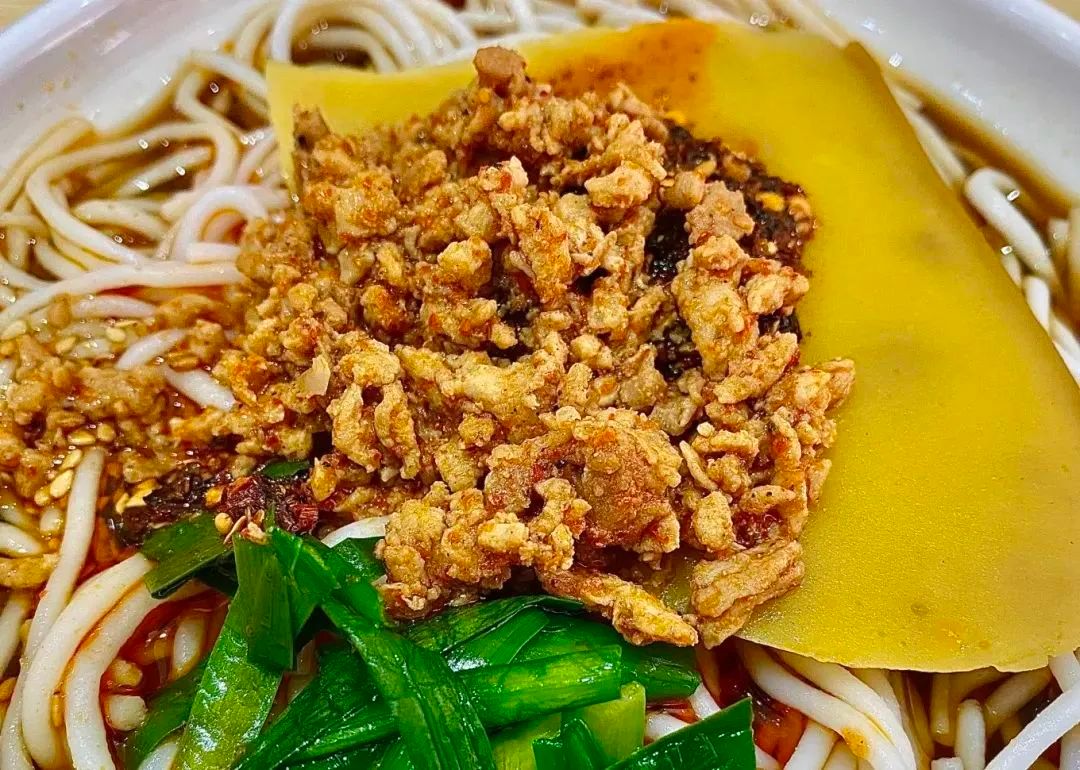 吃时还要加上烫过的韭菜段、炸猪皮(当地叫“叶子”)、葱花和薄荷,再点缀一点辣椒油。汤底的酱香、鳝鱼的肥厚和“叶子”的弹韧,是吃这碗米线的三重乐趣。
