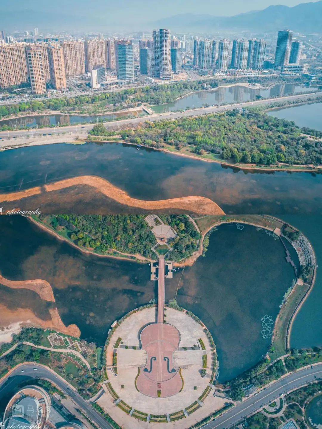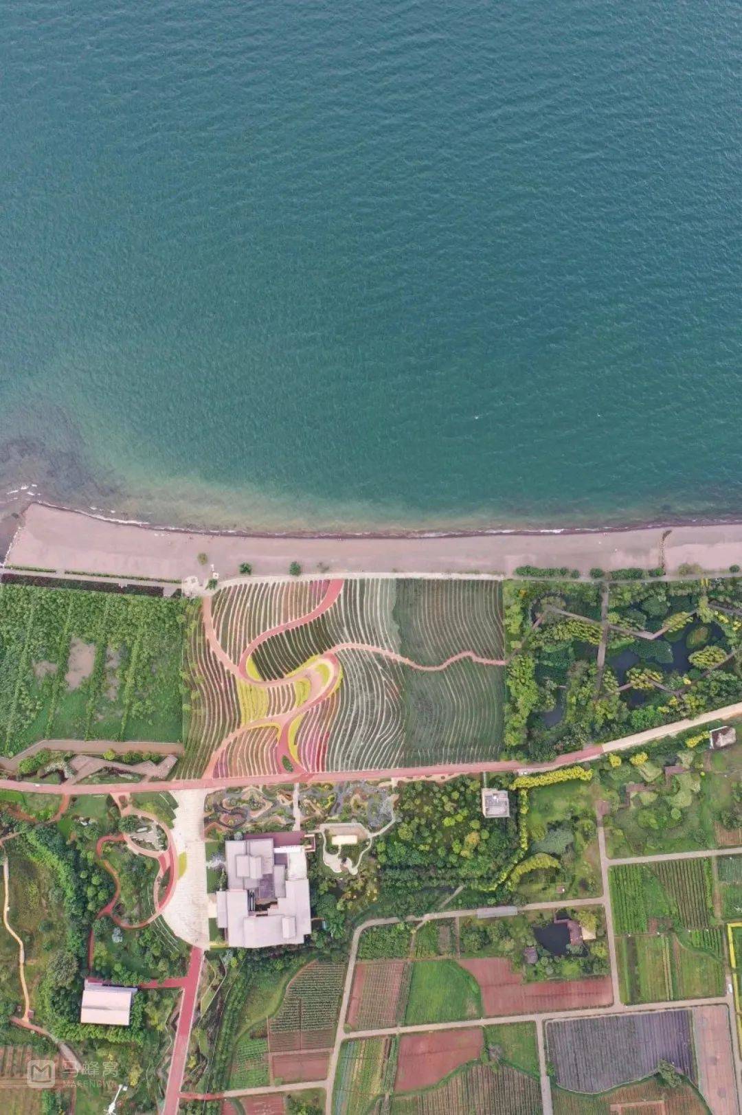 如果你有航拍器,从俯瞰的视角,可以看到公园宛如放置在抚仙湖畔的调色盘,美轮美奂。
