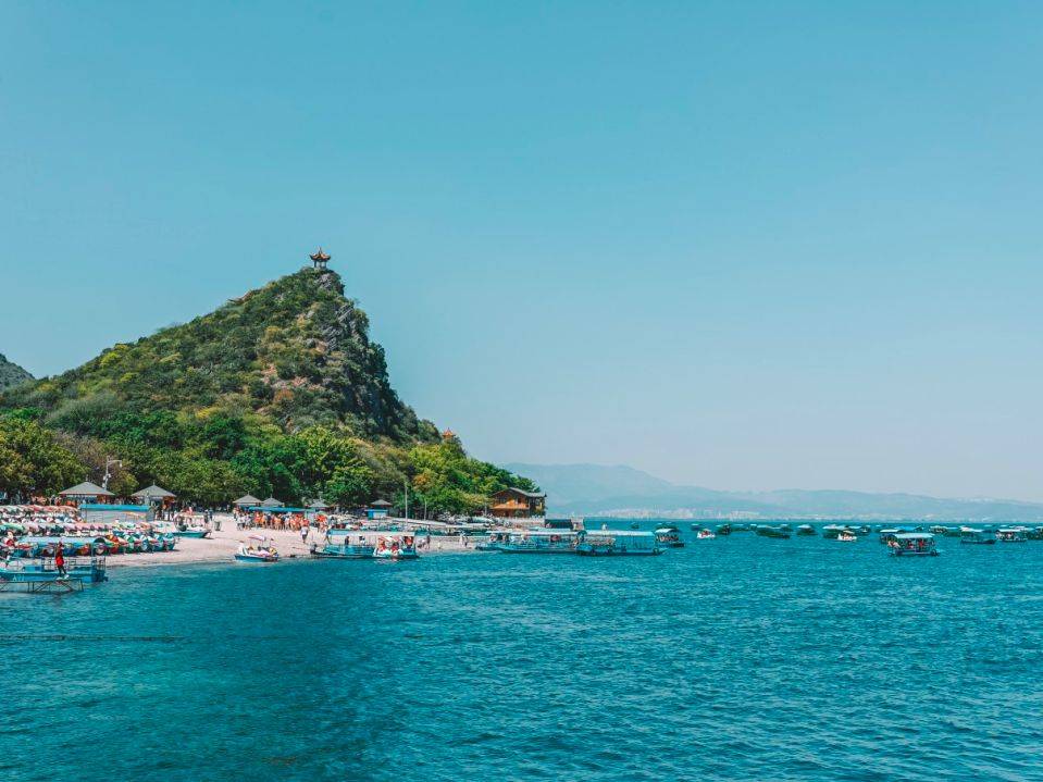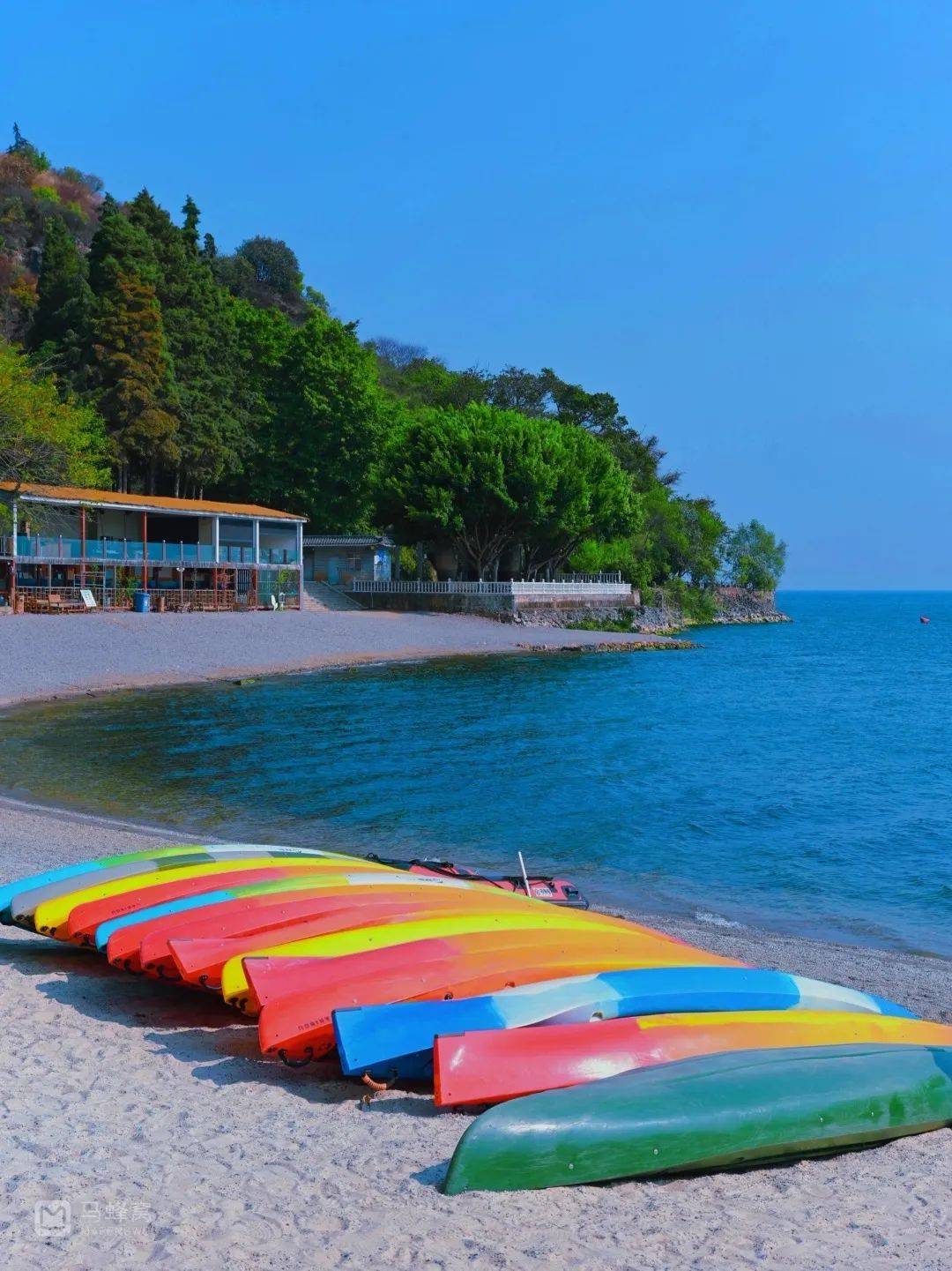 景区内细腻的沙滩,可以让你体验一把“海边”瘾;也可以租上一艘船(150元/艘,押金150元/艘,可坐六人,08:00-17:00开放),遨游在抚仙湖中。