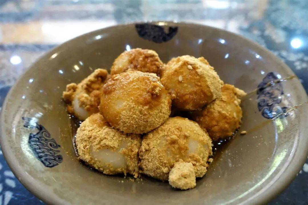将煮好的汤圆在去皮黄豆粉中轻轻摇匀,吃时浇上两勺红糖稀,在软糯香甜之外,又比普通汤圆多了一层豆香风味。