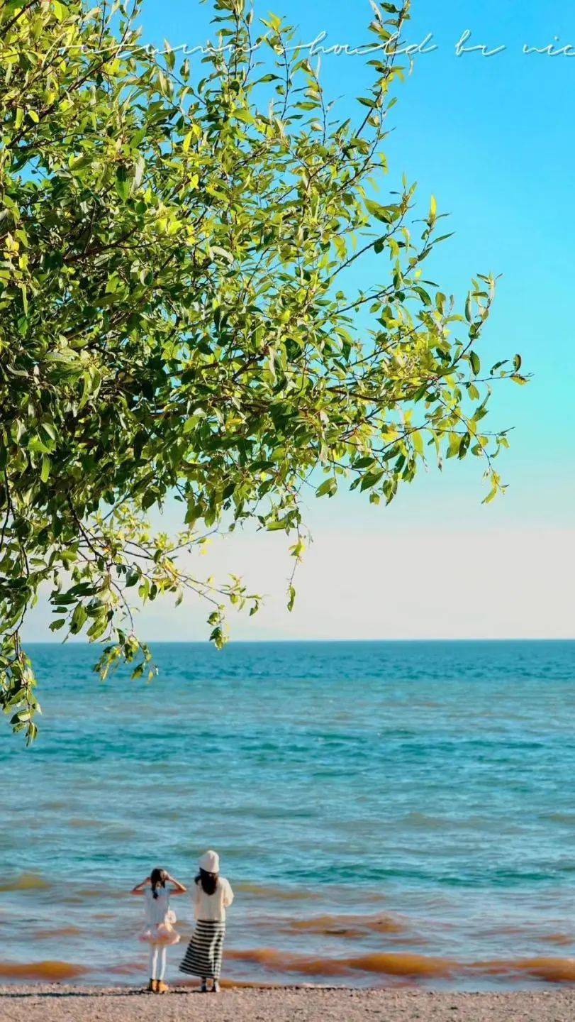 天气晴朗的时候,湖面会呈现出梦幻的蒂芙尼蓝色,湖边细软的沙滩和棕榈树,让人一秒穿越到热带岛屿。