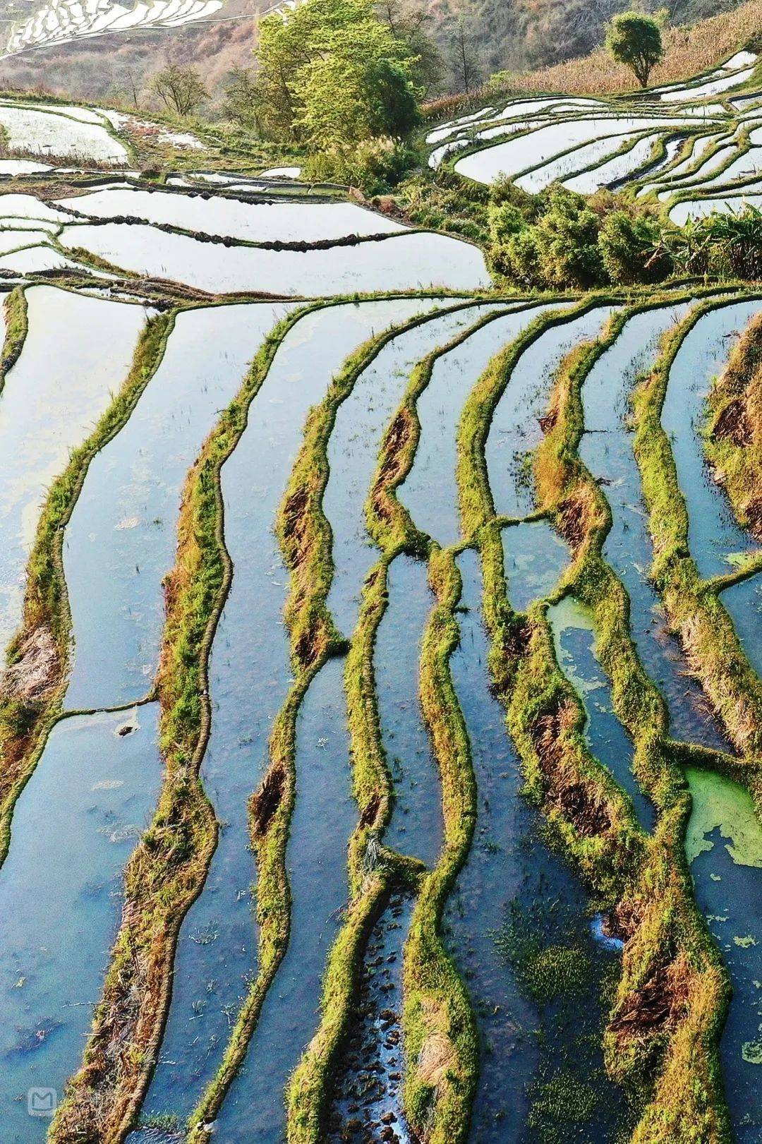 一年四季无论什么时候来,梯田都会呈现不同的美。春季轮廓明朗,清新的色彩覆盖大地;夏日呈现葱绿色,远处一片生机勃勃。