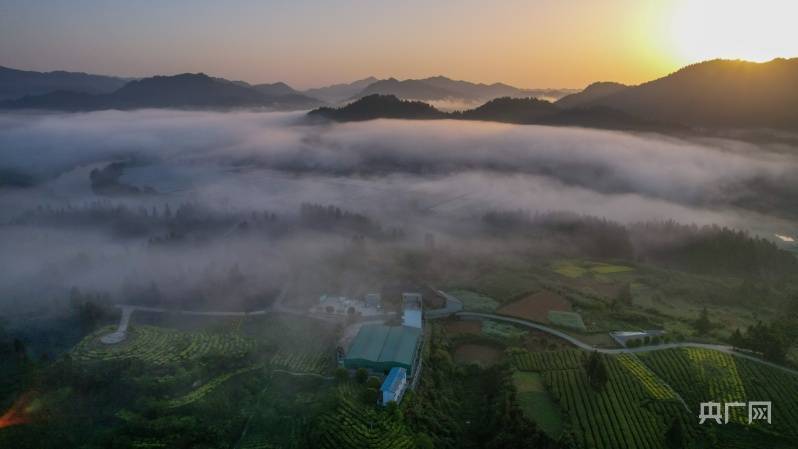 生态茶园日出景观如梦如幻(央广网发 李鹤 摄)