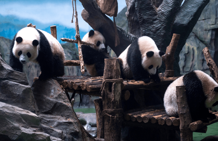 成都大熊猫繁育研究基地是世界最大的大熊猫主题公园,也是唯一能看熊猫幼仔的地方,位于北郊斧头山,距离市区10公里。这里的熊猫可不像动物园里的关在笼子里,它们活泼好动,在户外打闹嬉戏。运气好的还可以看到熊猫宝宝,在婴儿床上翻滚。青山绿水相伴,还有孔雀、天鹅、小熊猫等其他动物哦。不过尽量要早起,或者挑个凉爽一点的天气就可以看见大熊猫爬树哦,热了就都呼呼大睡了。