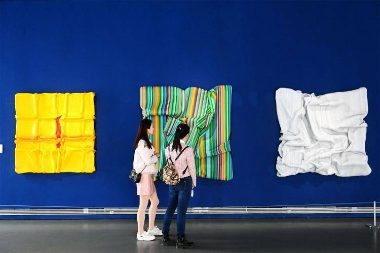 《“旅德中国艺术家作品展”巡展开展》2023年4月15日,山东西海岸新区,“旅德中国艺术家作品展”巡展在西海美术馆开展,众多市民和美术爱好者观看了展览。此次展览汇聚30多位旅德中国艺术家,展出作品涵盖绘画、雕塑、设计、建筑以及新媒体艺术等多个领域。俞方平 摄