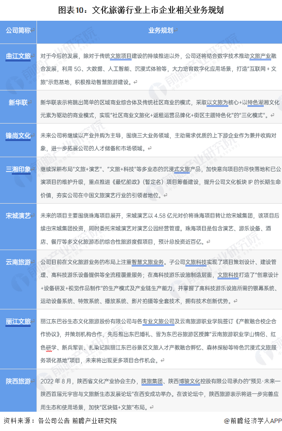 在文旅融合的背景下,我国近年来颁布多项政策推进文化旅游行业的发展。我国文化旅游主要上市企业业务规划如下: