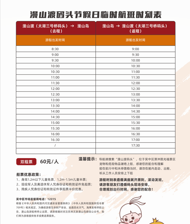 原标题:4月29日至5月3日苏州太湖漫山岛2023年五一期间游船班次临时调整