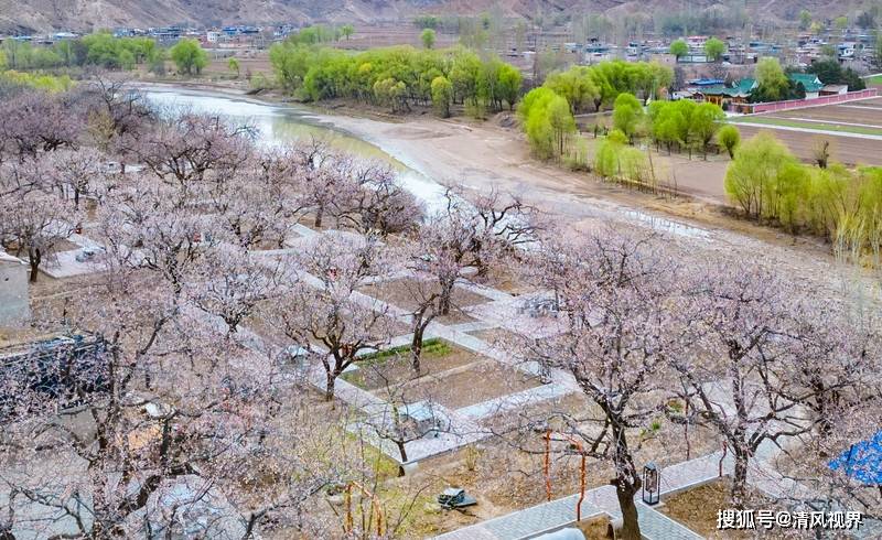 唐蕃云舍,如杏花一样的白色民宿建筑群,有了这里何必跑千里去南方体验小桥流水人家呢?清晨伴随鸟鸣,一打开窗满眼粉白的花世界,中午杏花河边品农家小菜,傍晚落日余晖沿着杏园的木栈小道穿梭,这不就是梦想中的仙境吗?