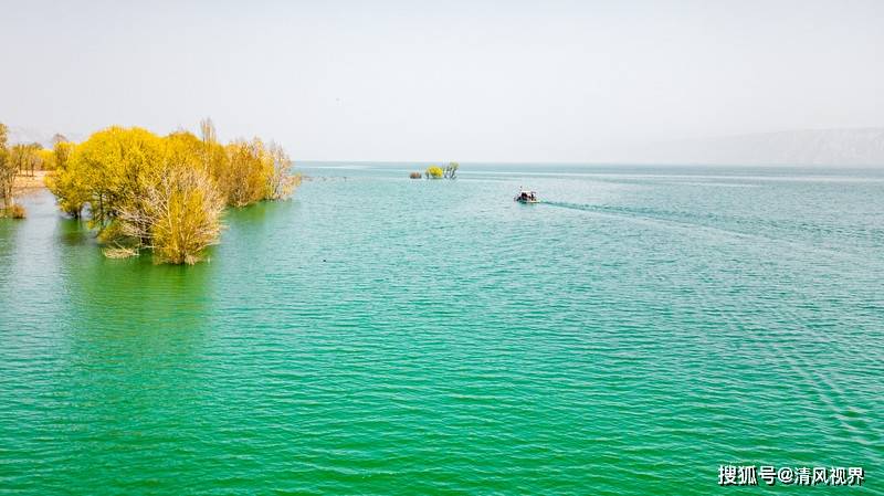 “黄河三湾”水天一色的湖面上白云悠悠,天空湛蓝,湖岸蜿蜒,绿树环合,在炎热的夏季你可以荡舟戏水,下湖畅游,拥抱触手可及的美景。
