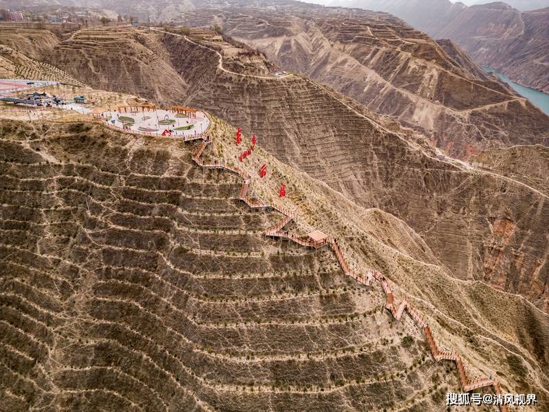 在山顶上的观景台,可以俯瞰整个黄河三湾的壮丽景色,这里的自然风光和人文景观吸引了众多游客前来观光旅游。